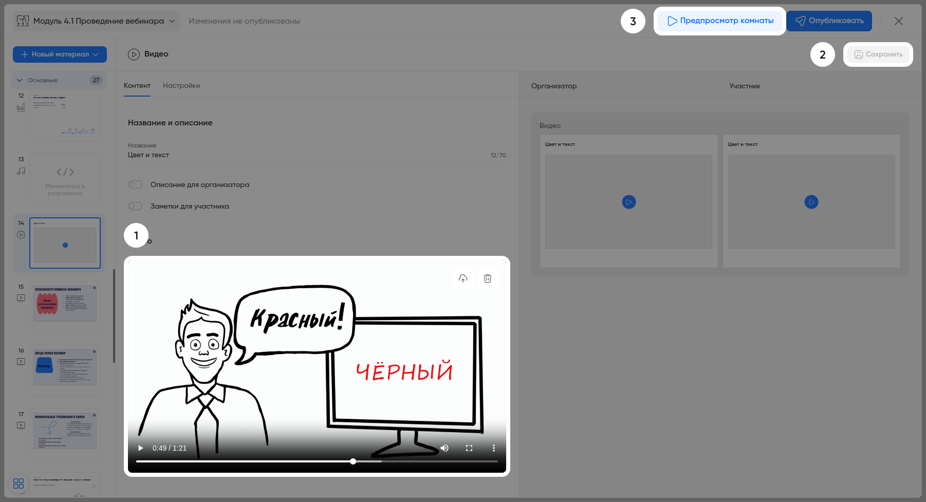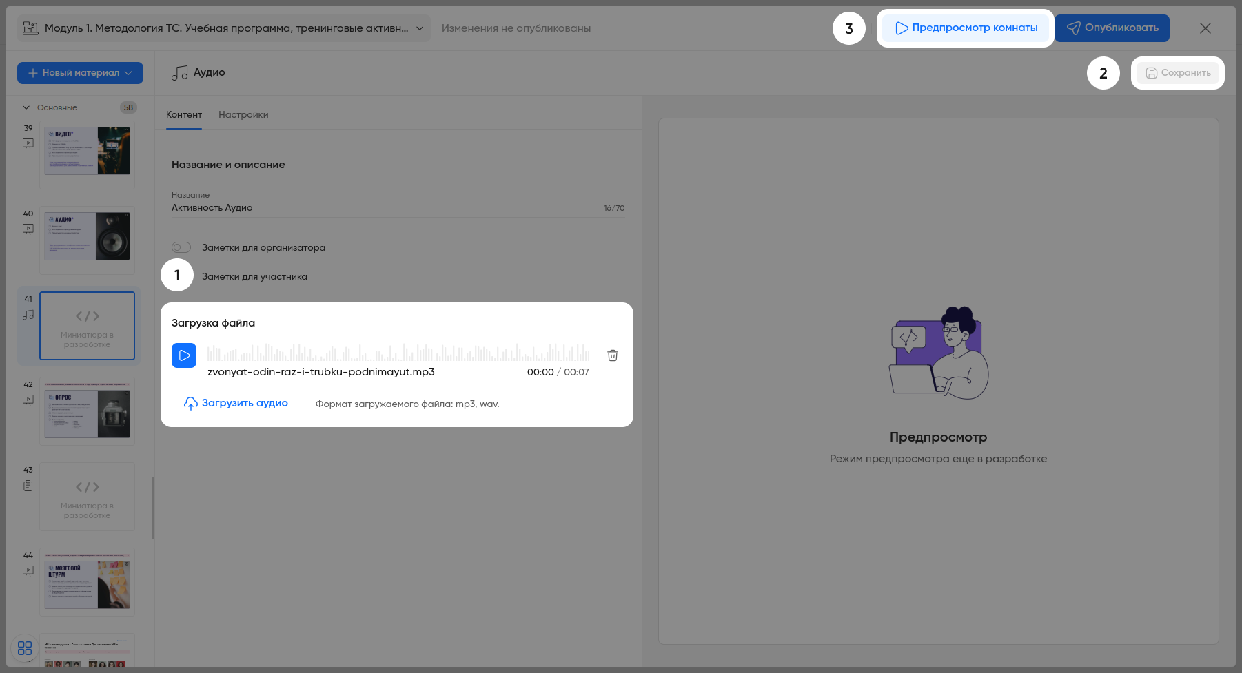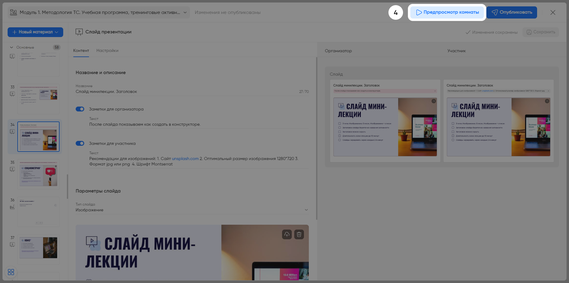 Чтобы покинуть режим предпросмотра, нажмите «Покинуть комнату».