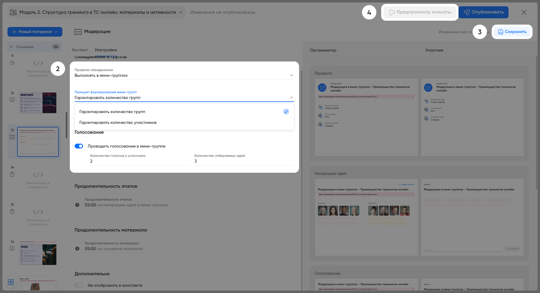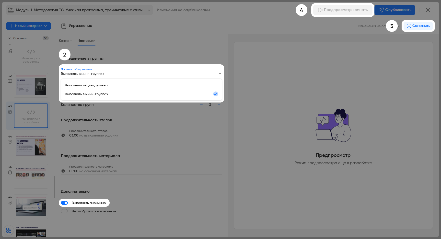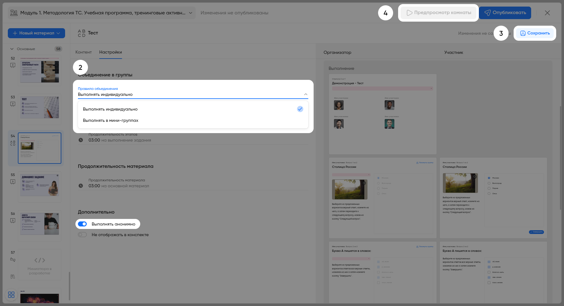 Настройте способ выполнения — в мини-группах или индивидуально.