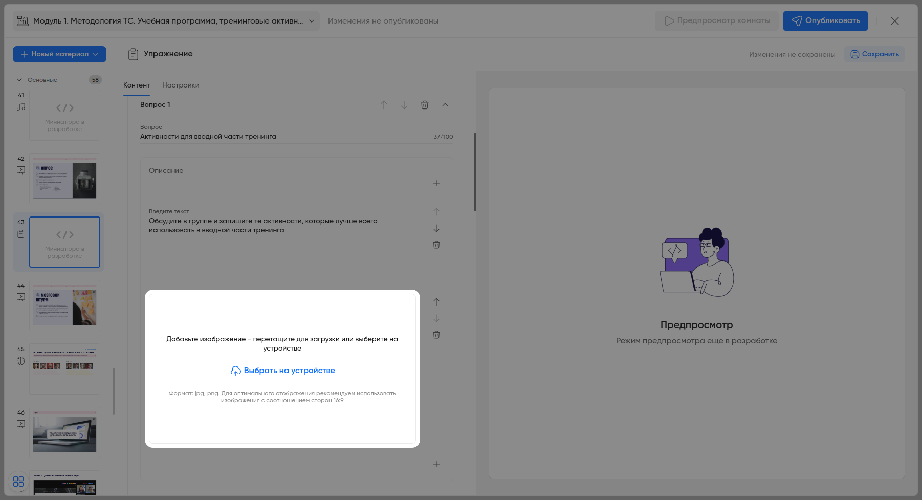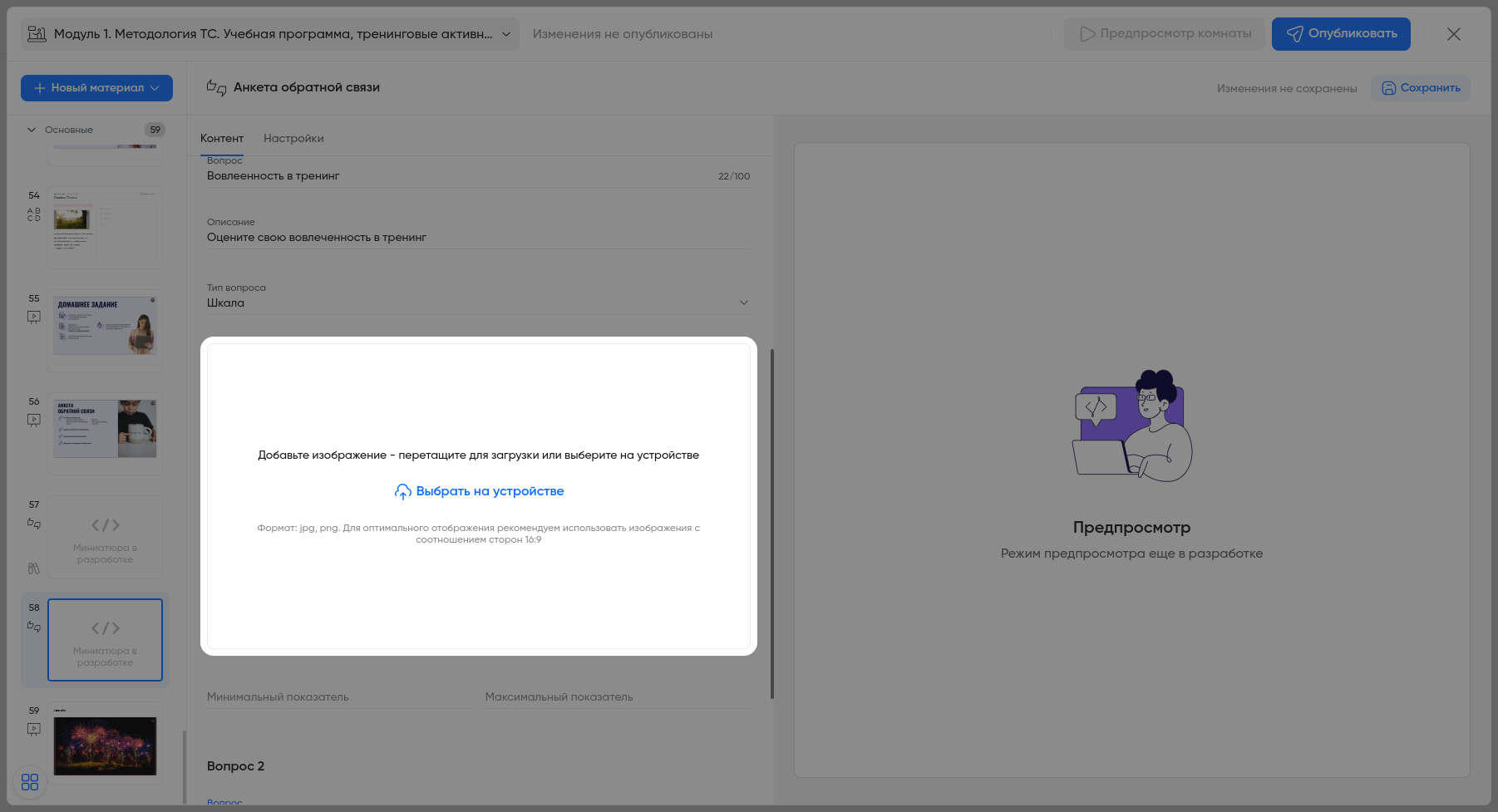 Добавьте во вкладке «Контент» описание (опционально) и изображение (опционально).