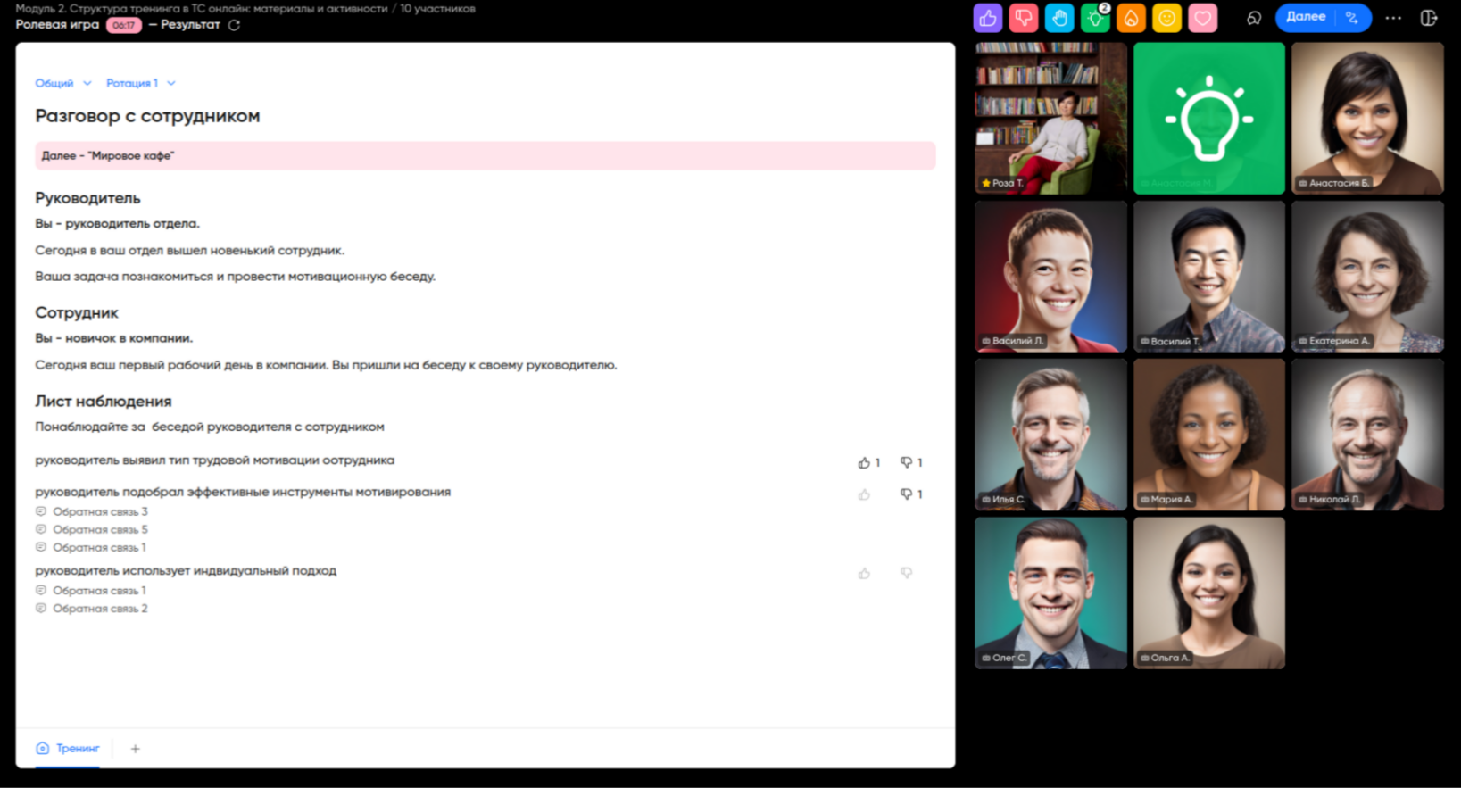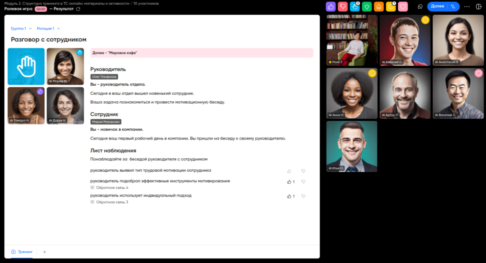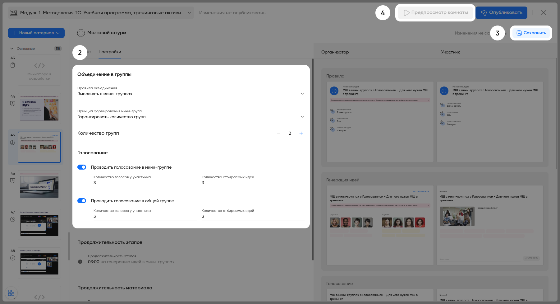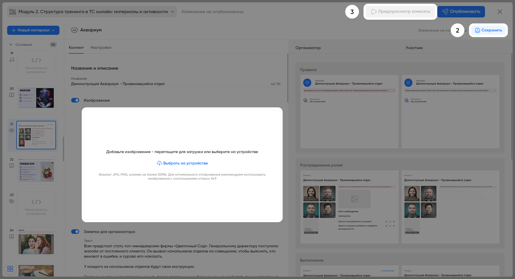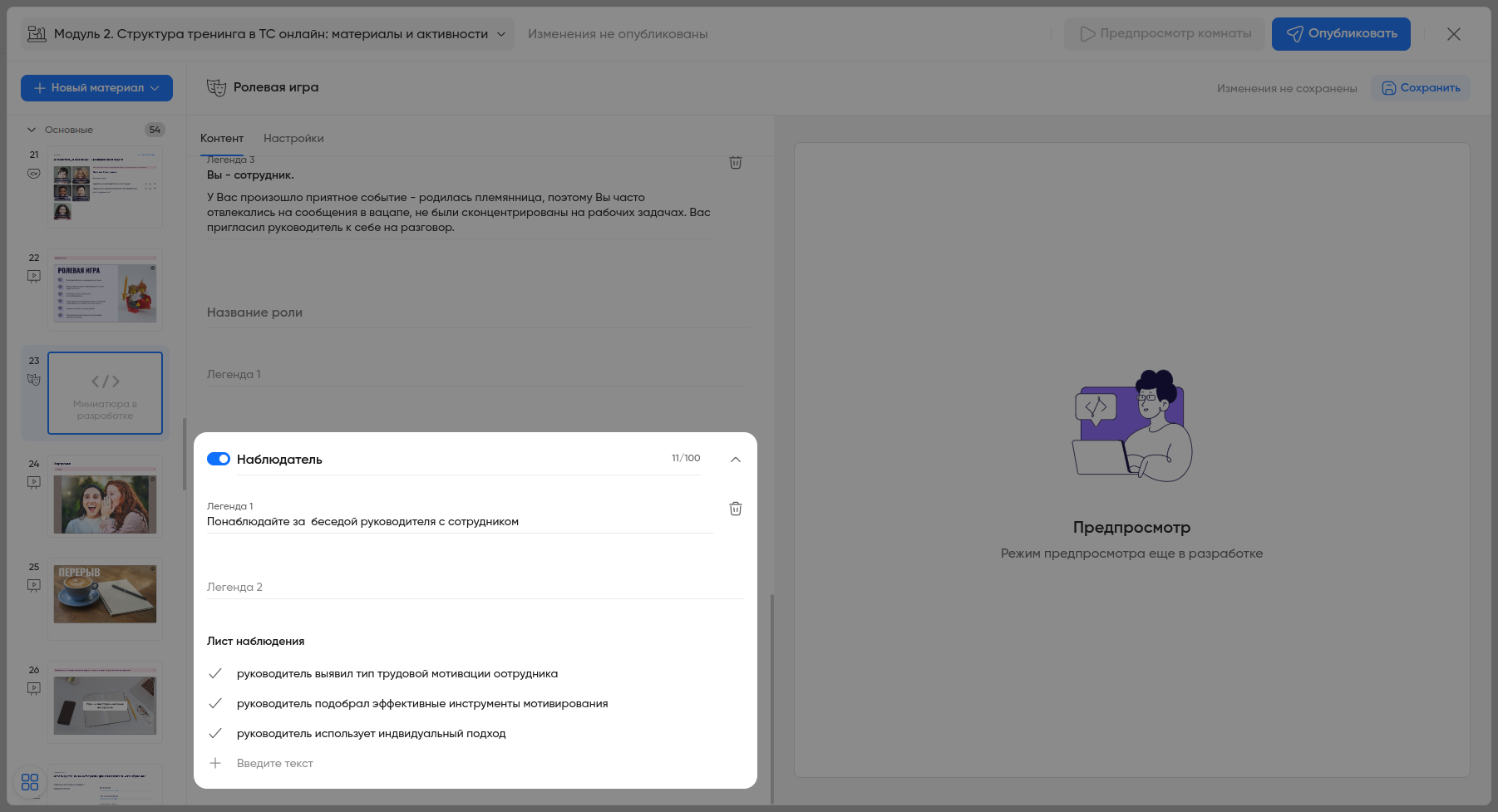 Настройте смену ролей (опционально), добавьте легенды ролевым участникам, если предусмотрена смена ролей.