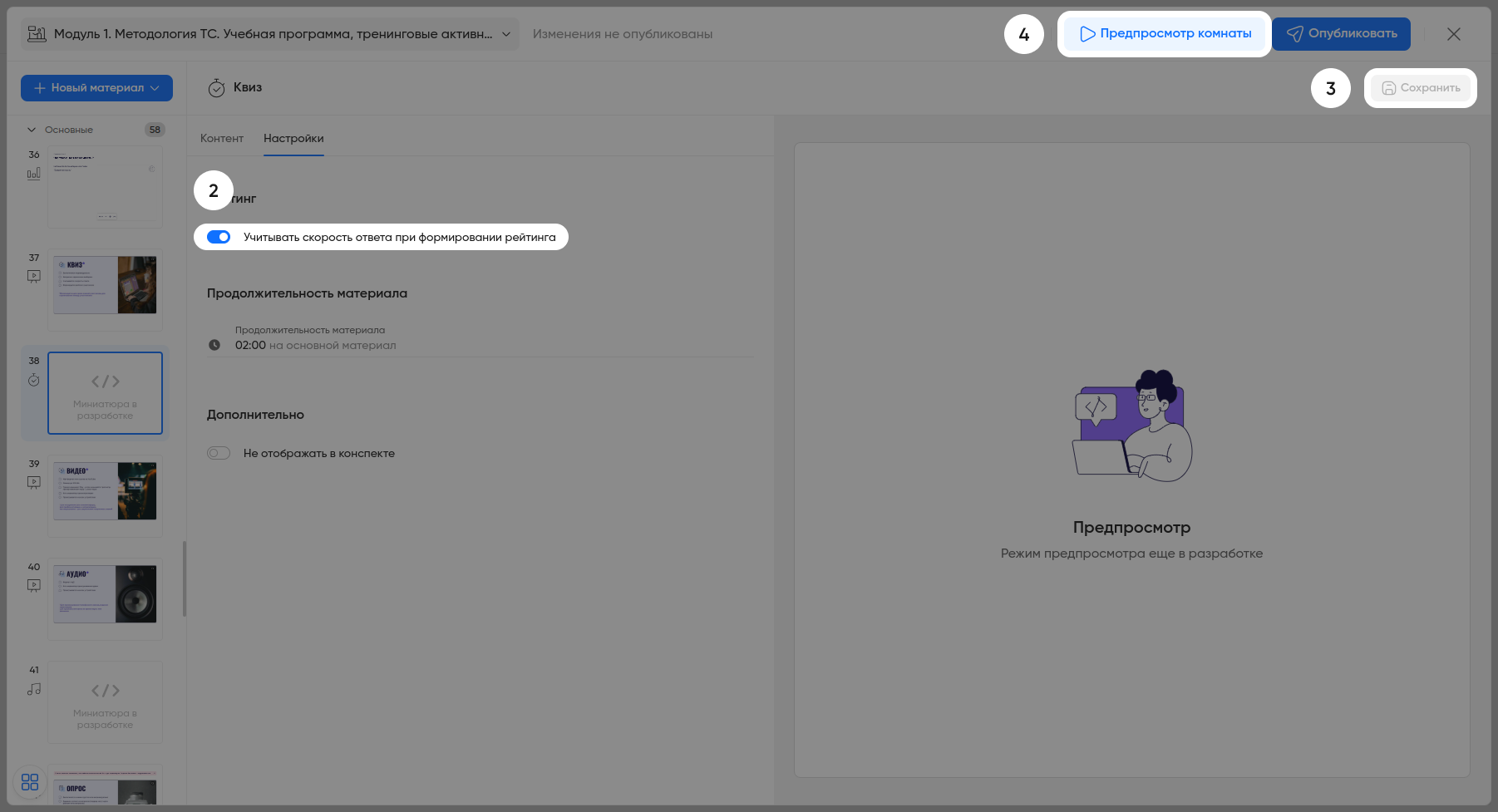 Во вкладке «Настройки» установите учитывать скорость ответа при формировании рейтинга или нет.