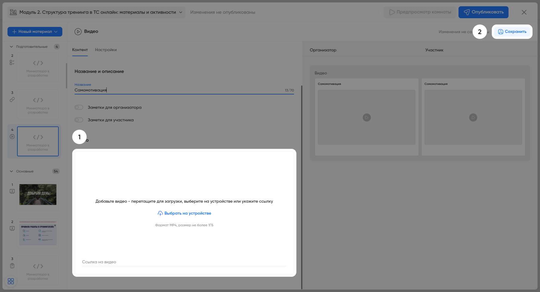 Загрузите видео в формате mp4 размером не более 1 ГБ.