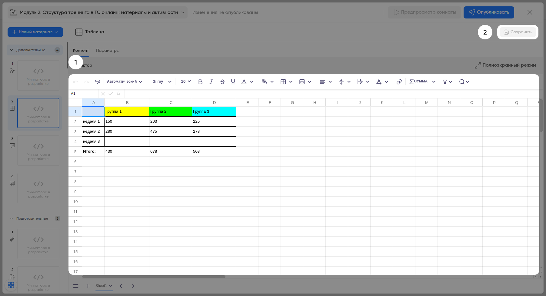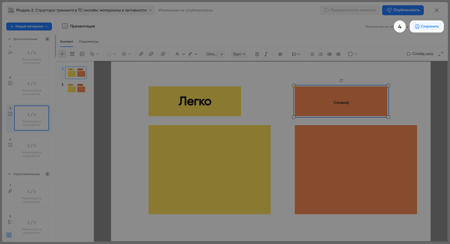 Сохраните материал.