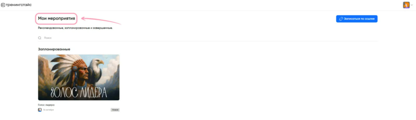 В вашей организации может быть запланировано несколько мероприятий. Если организатор прислал вам ссылку для записи, в личном кабинете в разделе «Мои мероприятия» нажмите «Записаться по ссылке», вставьте ссылку и нажмите кнопку «Записаться».