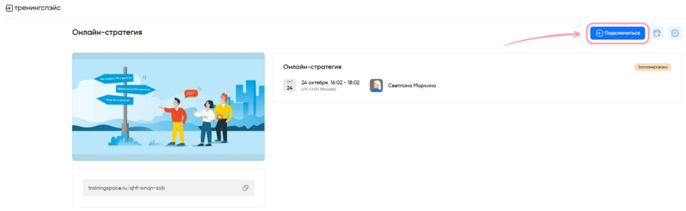 Далее вы окажетесь на странице мероприятия. Нажмите «Подключиться», и откроется комната диагностики для проверки вашего устройства.