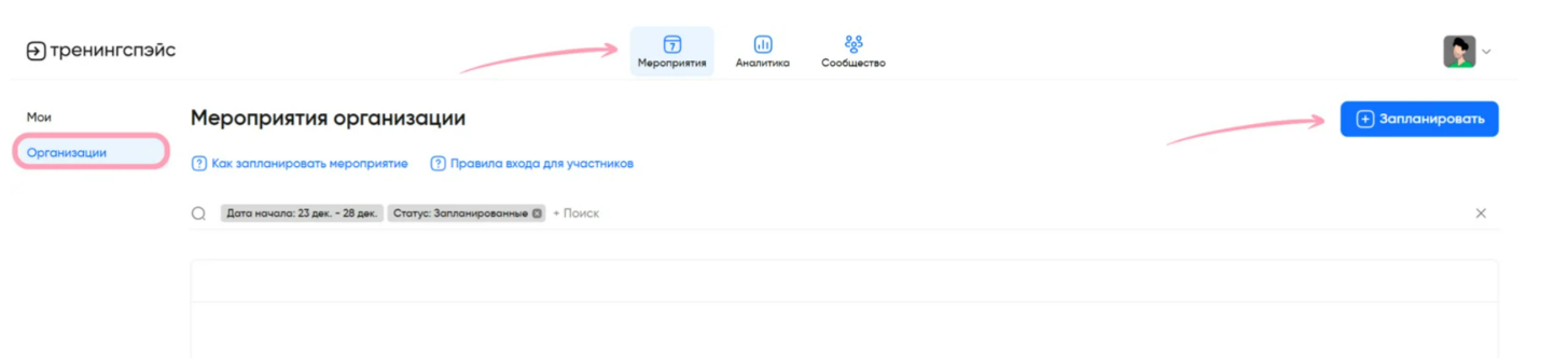 Чтобы запланировать мероприятие, у вас должна быть роль ведущего или организатора.