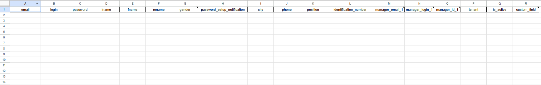 Заполните колонки с обязательными полями. При необходимости добавьте информацию по дополнительным полям.
