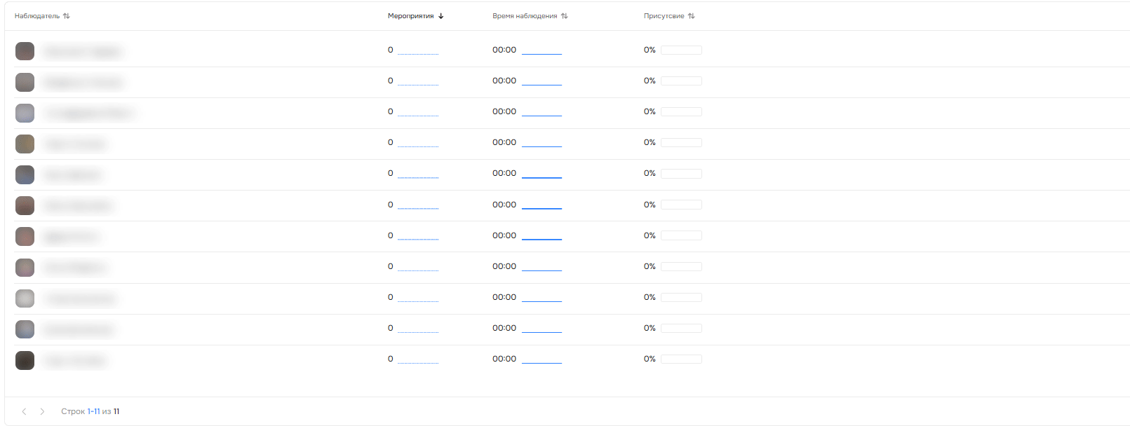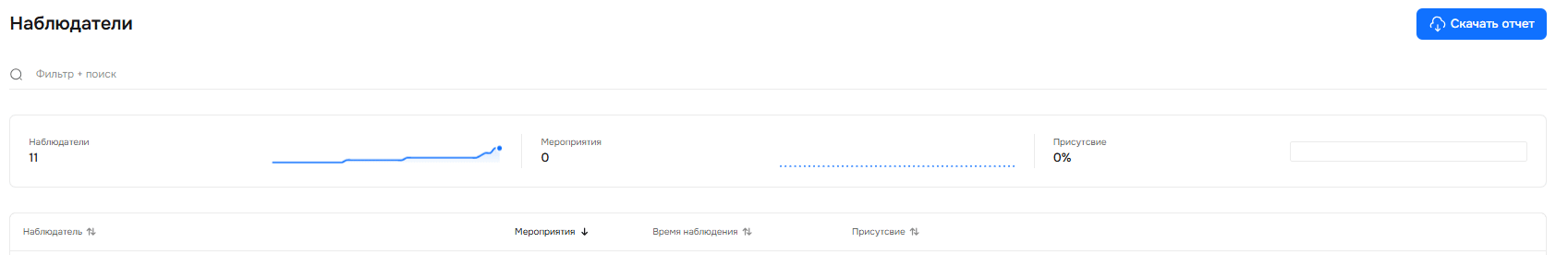 Здесь вы видите активность ваших наблюдателей. Эта страница показывает, кто из них следит за качеством мероприятий, как часто и насколько внимательно.