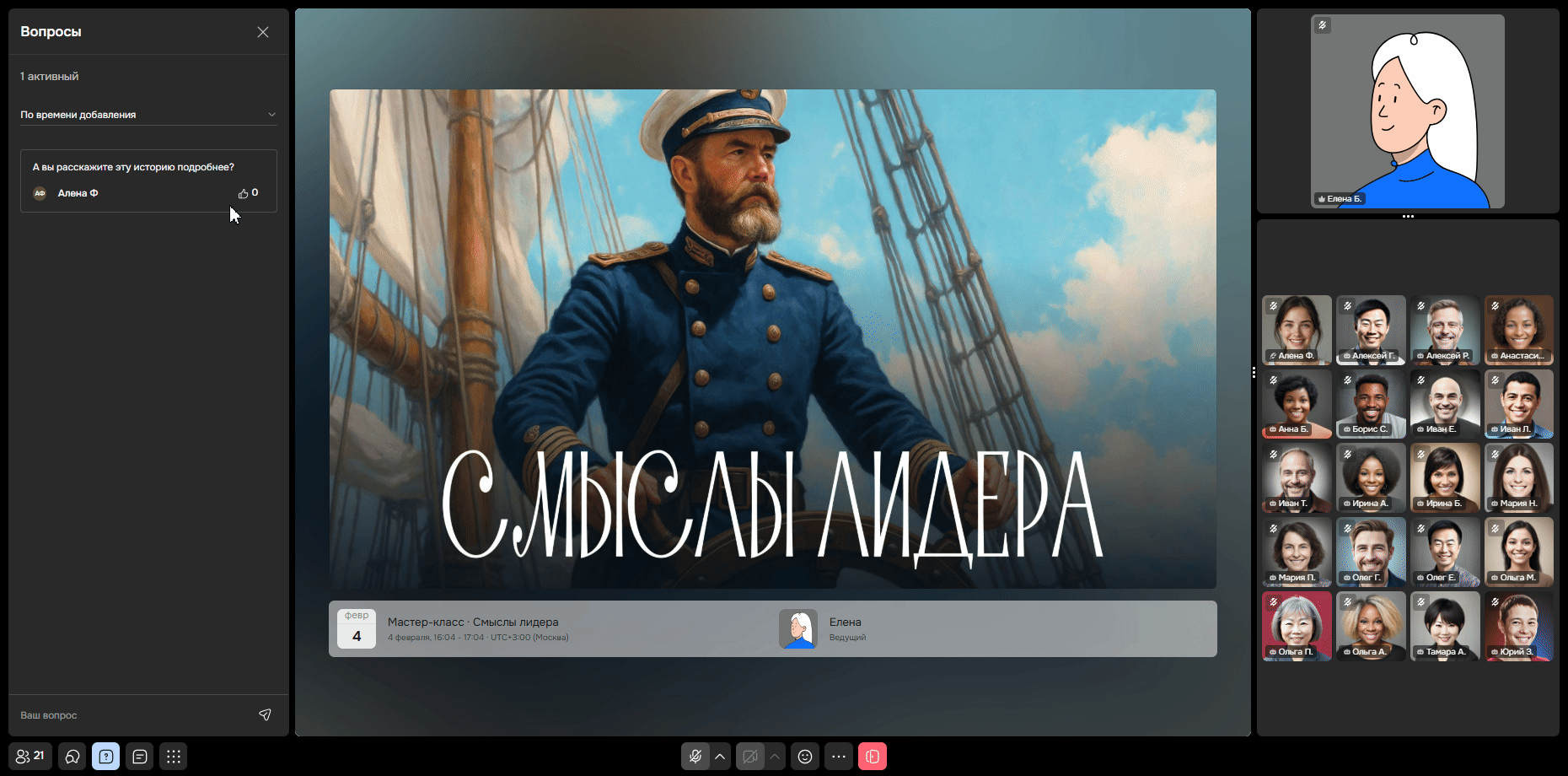 Нажмите на кнопку «Вопросы», чтобы задать вопрос ведущему напрямую, так он не потеряется.