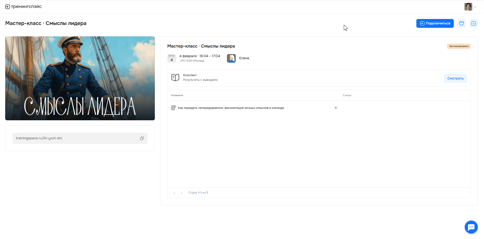 На странице завершенного мероприятия найдите блок «Конспект».