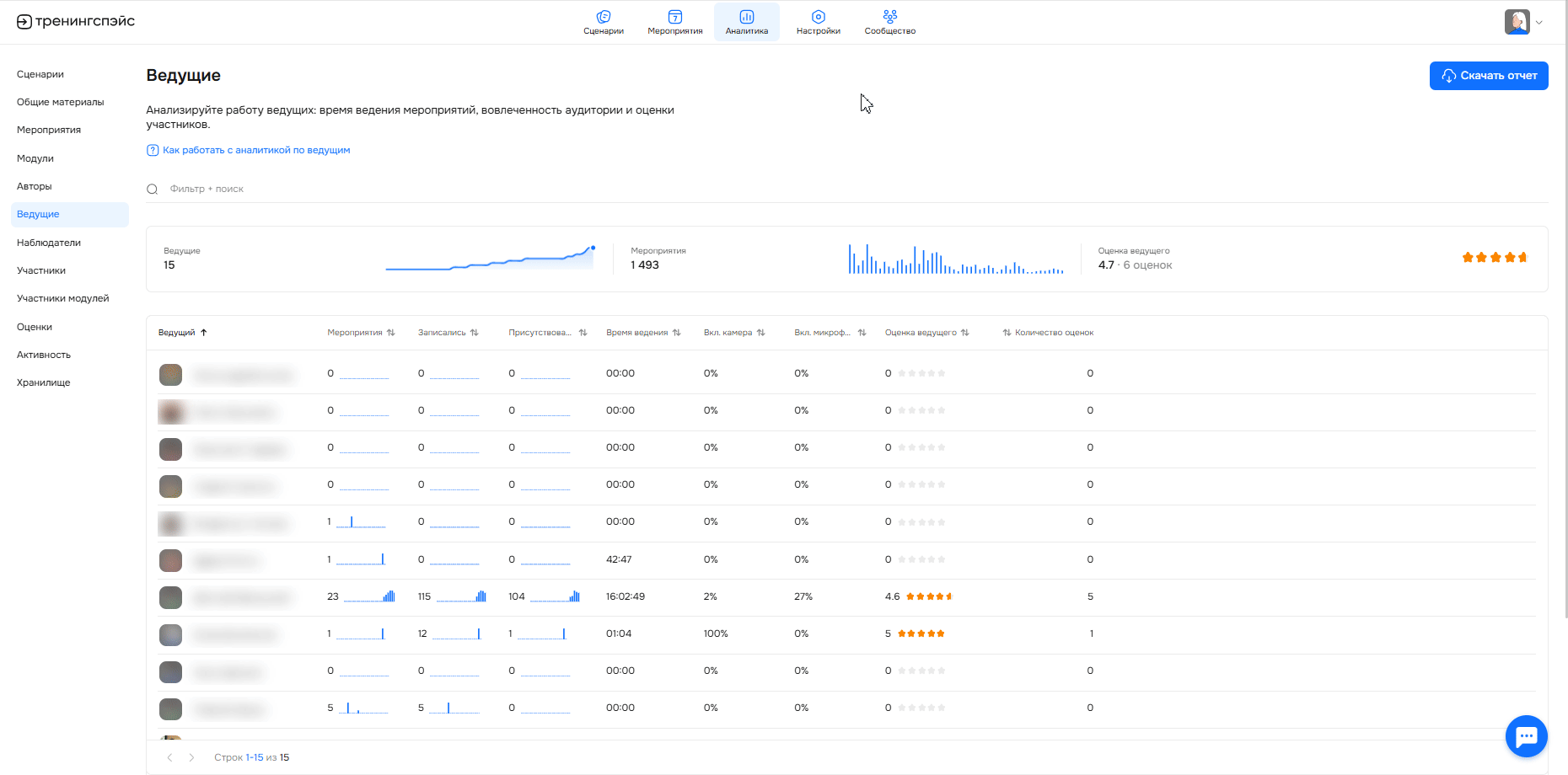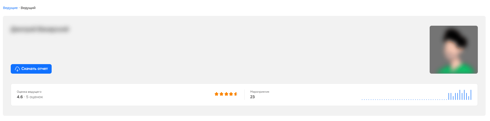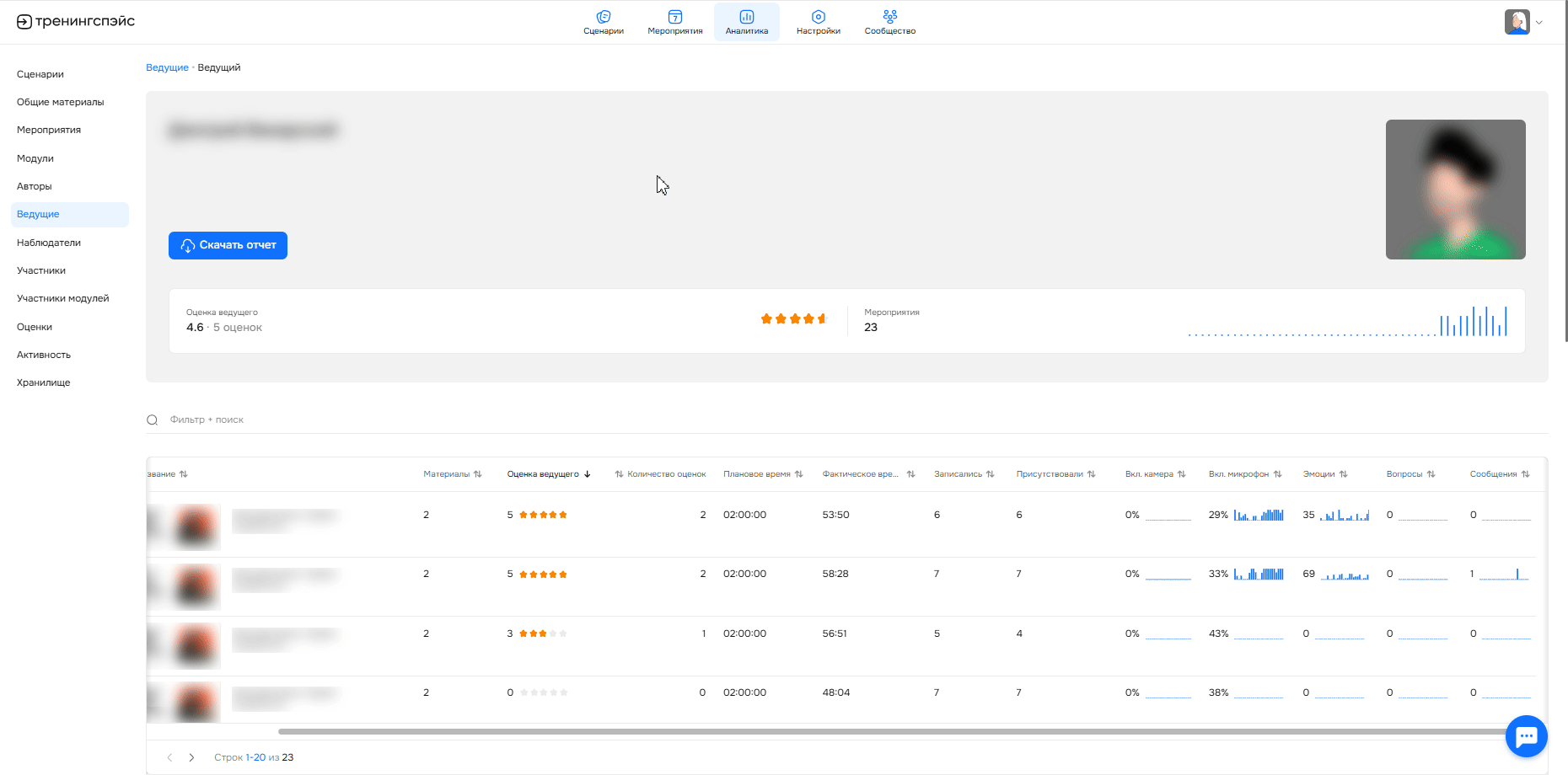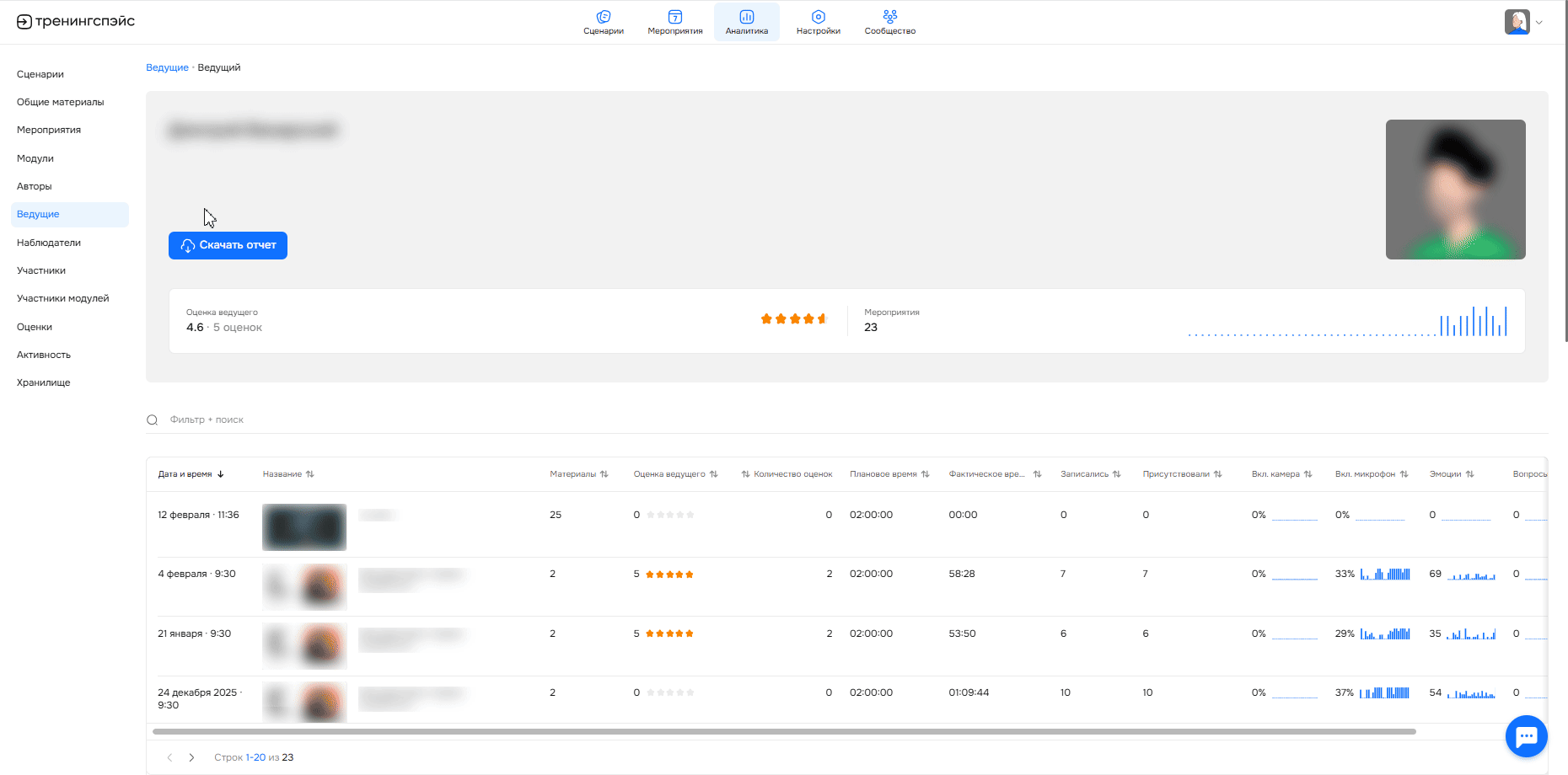 Здесь собрана вся информация по мероприятиям, которые провел ведущий. Эта таблица поможет составить общую оценку его работы.