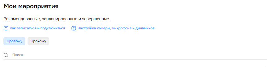 В разделе «Мои» вы будете видеть все ваши мероприятия, которые у вас были запланированы или уже завершены. Все они будут находиться во вкладке «Провожу».