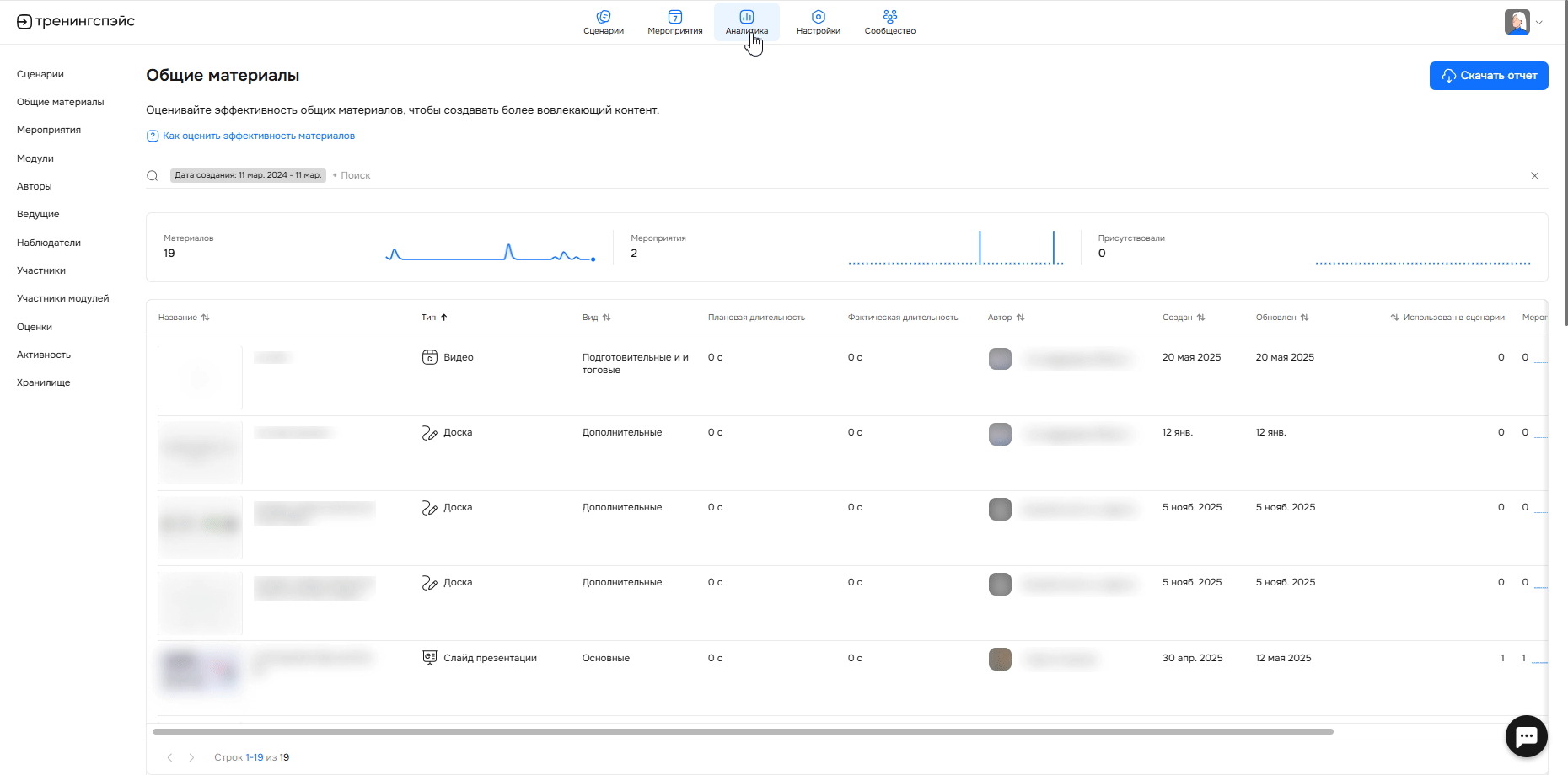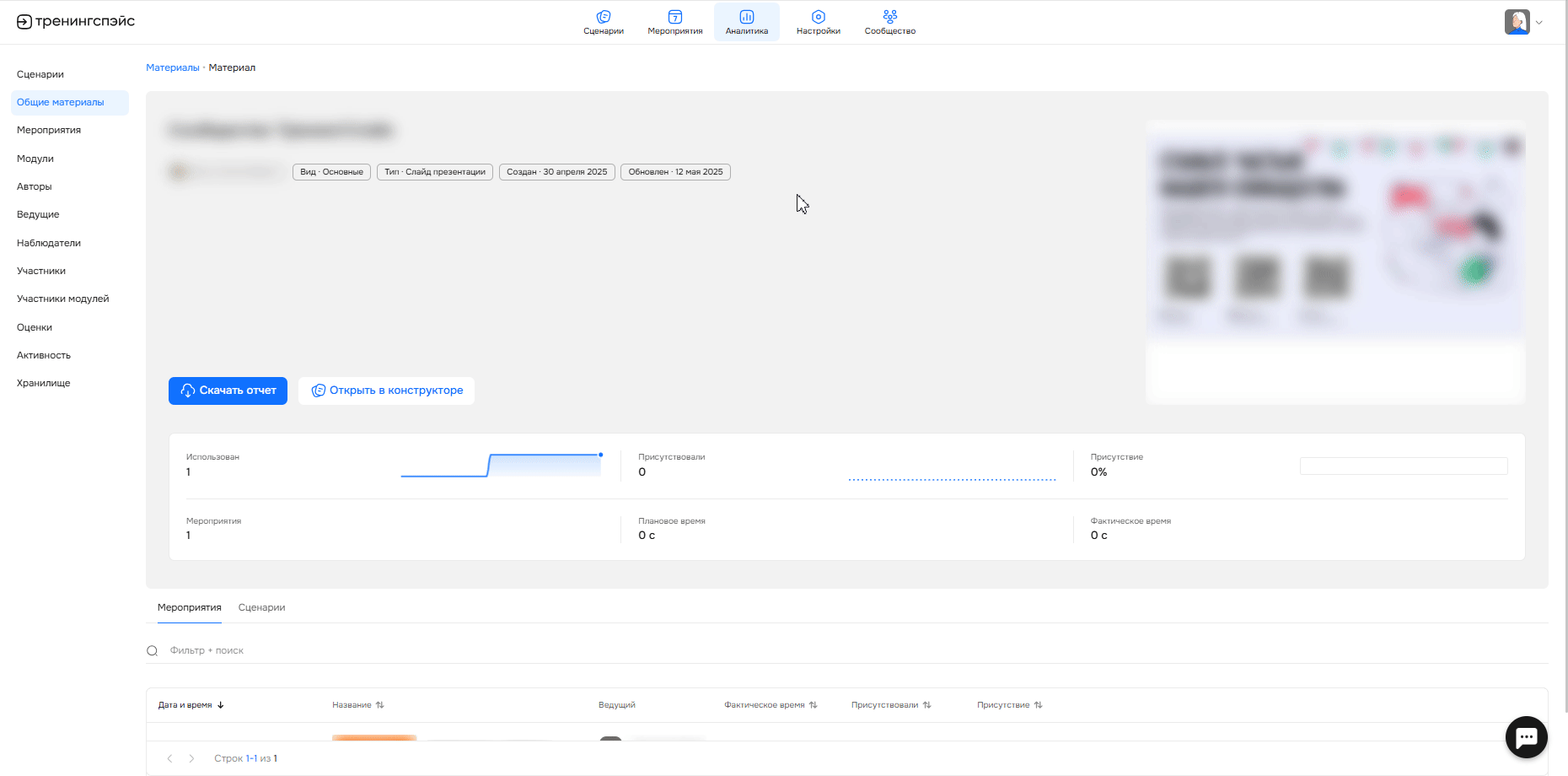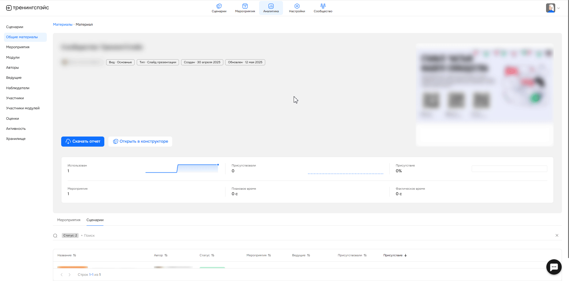 Мероприятия — количество мероприятий, где был использован сценарий с общим материалом.